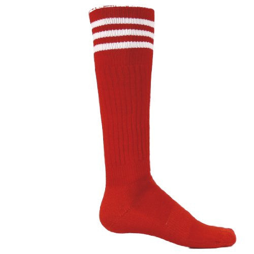 Three Striped Stretch Nylon Athletic Sock. Small fits a youth shoe size of 12-4, Ladie's shoe size of 4-5. Medium fits a Ladie's shoe size of 5-10, Men's shoe size of 4.5-8.5. Large fits a Ladie's shoe size of 11-12, Men's shoe size of 9-12.5.