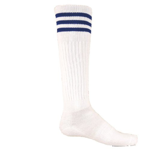 Three Striped Stretch Nylon Athletic Sock. Small fits a youth shoe size of 12-4, Ladie's shoe size of 4-5. Medium fits a Ladie's shoe size of 5-10, Men's shoe size of 4.5-8.5. Large fits a Ladie's shoe size of 11-12, Men's shoe size of 9-12.5.