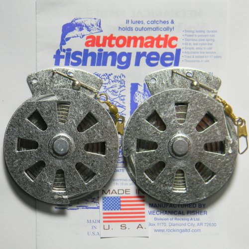 You will receive 2 Mechanical Fisher Reels and 1 instruction booklet, neatly packaged in a single padded envelope. These are the Best reels on the market. The Stainless Steel Spring is the best choice for Fisherman, Preppers, Survivalists and Hunters. They're very easy to use. Simply attach to the object of your choice, bait the hook, set depth and trigger, then wait. The Mechanical Fisher does the rest. It sets the hook, and retrieves the fish! Kind of like a mouse trap for Fish, but these do not kill the fish.
