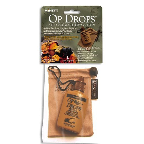 Use Op Drops on all your eyewear and optics for fog-free viewing and gentle cleansing for all dry lenses. Includes MicroNet Microfiber cleaning cloth/pouch. McNett customer care @ 1-800-221-7325 (or) www.mcnett.com
