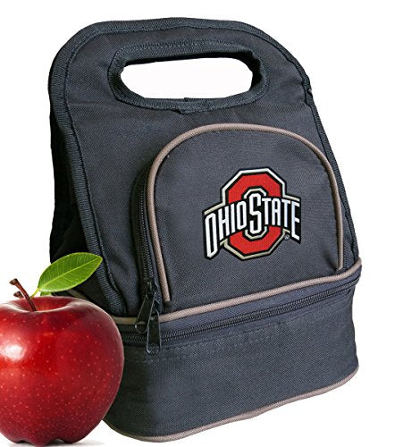 The Broad Bay double decker Official OSU Buckeyes lunch box cooler bag is just the right size for lunch or travel. This well-insulated Official Ohio State University Logo lunch bag contains 2 separate fully insulated and zippered main compartments and a zippered front pocket that's perfect for utensils, condiments, or lunch money. The lower compartment is ideal for packing a plastic food storage container. Then pack the rest of your lunch on the separate upper section. Top quality construction with additional convenience features such as a double-zipper wrap-around closure and handy handle. This Ohio State University lunch bag also works great as a OSU Buckeyes cosmetic or travel accessories bag! Total functional area dimensions:8.25" long x 6.5" deep x 8.5" tall -- Compact and well made! Lower compartment interior: 8.25" long x 6.25" deep x 3" tall Top triangular compartment interior: 8.25" long x 6.25" deep x 5.5" tall at highest point. OFFICIAL Ohio State University Lunch Bags & OSU Buckeyes Lunch Coolers - Up to 12% Returned To Support Ohio State University Programs!