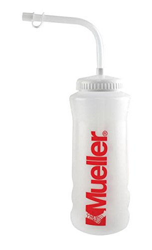 Quart Water Bottle, 1 Natural, Red Mueller Logo, w/ White Straw Cap