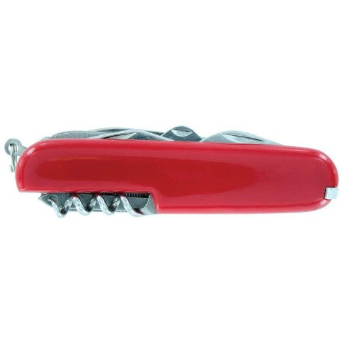The Royal Crest "Camper" 16-Function Knife is the perfect tool set to take on your next camping trip or anywhere. It includes: can opener, cork screw, reamer, manicure blade, sturdy reamer, Phillips screwdriver, hook disgorger, fish scaler, wood/rope saw, scissors, cutting blade, slot screwdriver, key ring, toothpick, and tweezers. The Royal Crest "Camper" 16-Function Knife's blades are 420 surgical stainless steel and its red handle is composed of durable Leymar.
