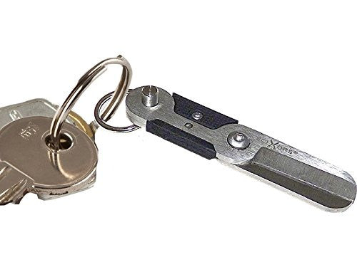 A mini pair of personal sprung scissors with quick release pull clip and split ring for safely attaching to you key ring.. Fabricated from high grade stainless steel which cleverly incorporates a hidden spring for automatic opening.
