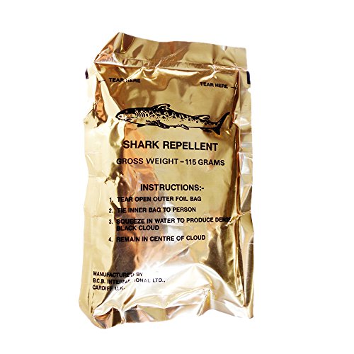 BCB shark repellent contains a chemical and a thick black dye that repels and disorientates sharks. When tested by the US Navy BCB's shark repellent was the only product out of 24 to achieve any success in repelling sharks. Since then BCB's shark repellent has been used by Navies worldwide as their approved shark repellent. When this foil packed sachet is squeezed in water, the crystalline acetate produces a dense black cloud. The inner bag has an attachment cord so it can be kept close to your body. This NATO approved product is used in life rafts and for airborne survival packs. NSN: 6850-99-220-3539