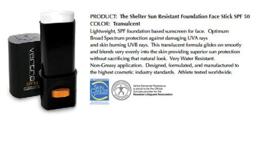 Vertra Sunscreen: The Shelter Sun Resistant Foundation Face Stick SPF 50, Color: Translucent