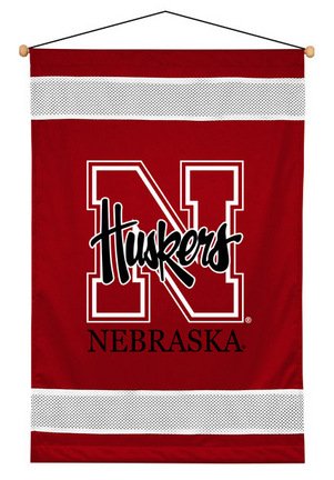 This NCAA Nebraska Cornhuskers wall hanging measures 29.5" x 45". It's lined and includes wooden dowels for easy hanging. Coordinates to the Sidelines Collection from Kentex.
