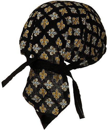 Fleur De Lis Motorcycle Biker Skull Cap Doo Rag. 100% Cotton fabric. Can be used for New Orleans Saints Fans, Louisville KY, Quebec or any city current or former residents that celebrate the Fleur De Lis as part of its heritage.