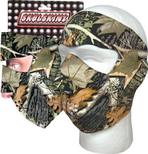 Camo Hunting Face Mask. Vent Holes for ears and mouth. Mask patterns are reversible to solid black color. Elastic neoprene protects face from water, sand, debris, wind , bugs and extreme hot or cold climates. Can be used with goggle, under helmet or without helmet. Adjustable velcro closure. Made from neoprene. Includes original manufacturers packaging - No box. One size fits most. Good for motorcycling, hunting, snowmobiling, snowboarding, skiing. Includes ONE mask.