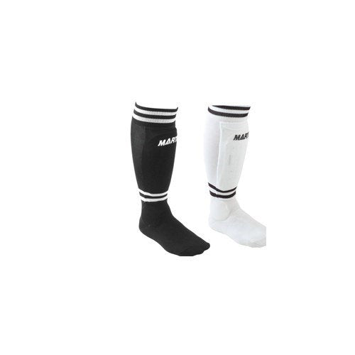 Martin's Sock Style Shin Guard is an all-in-one sock with EVA foam shin guard. Provides built-in foam ankle padding and a removable padded shin guard. It is machine washable.