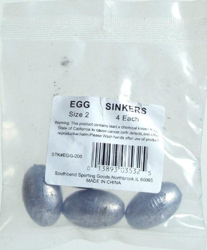 Egg Sinkers are oval shaped with a hole to slip the fishing line through so the sinker will "slip" and the fish will not feel the weight of the sinker when it picks up the bait.