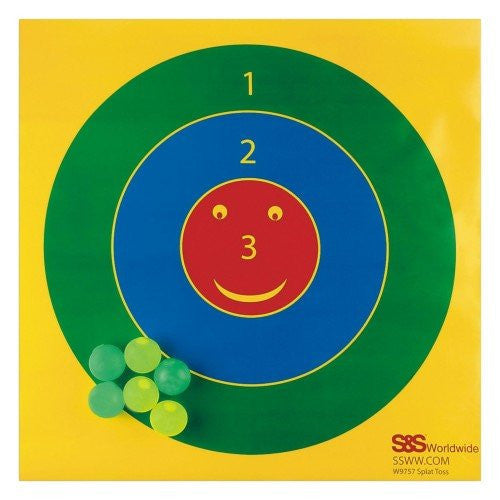 Our new toss game guarantees super fun with balls that stick when they hit the target! Balls pop back into shape. The player who scores the most points wins. Game includes six 2"-diameter sticky balls and one 27" x 27" multicolored smiley face toss target.