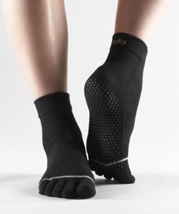 ToeSox are made with a five-toe design to promote toe separation resulting in greater flexibility and strength. The non-slip sole provides slip free security during your practice. Worry no more about dirty mats and sweaty residue, ToeSox are the best hygienic alternative to bare feet. Made with cool and comfortable organic cotton, ToeSox slip right into your suitcase so there is no need to travel with a mat.