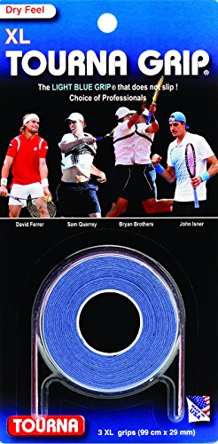 Tourna-Grip Original XL: This is the original overgrip used by professionals including Pete Sampras, James Blake, the Bryan Brothers, Sam Querrey, David Ferrer, John Isner, and many more. It’s used by more pro and college players than all other grips combined. Why? Because Tourna-Grip actually performs better with moisture when all other overgrips on the market get slippery with moisture.