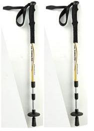 Ultra light hiking pole. Serious hikers choose the ultra light 70/75 aluminum composition pole. 20% lighter than conventional poles. Special double grip was designed for multiple options while trekking and touring. Speed locking system for adjusting length of pole. Patented locking mechanism for trouble free locking and adjusting. Polished foam moisture wicking grip. Comfortable Neoprene wrist strap with quick adjustment. Three options for hiking pole base included. Carbide tip for ice or special terrain, rubber cap for general hiking, and basket for use in snow. Adjustable height: from approximately 26 ½" to 53" (135cm).