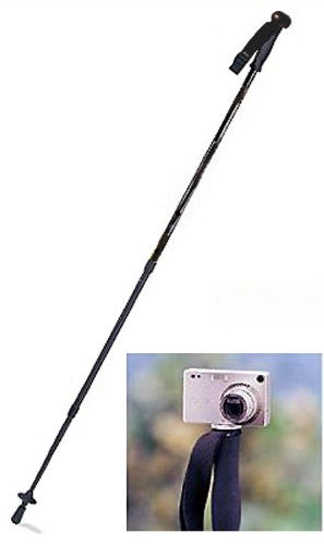 / Twist-lock lightweight aluminum telescopic pole extends from 29'' up to 63”. EVA foam grip with ball knob: Integrated camera mount on top; Carbide tip; Rubber end cap, snow disc, compass, thermometer and adjustable nylon wrist strap. 12oz. Black