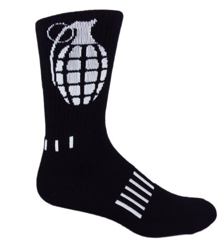Looking for CrossFit explosive performance? Our Custom Grenade socks will add a little kick to your workout. Complete with a patented Ventilator Mesh Top, Achilles protection, and Compression, our socks will enhance your CrossFit WOD. The Grenade says it all! Black and White, One Size Fits All.
