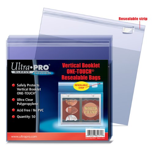 These ultra clear, archival-grade resealable bags are designed for vertical booklet One Touch holders. Protects One Touch holders from scratches and helps the One Touch stay intact during transport. Acid free, no PVC. 50-count packs.