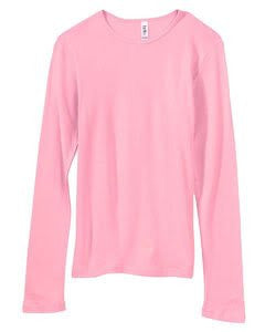 Women's Baby Rib Long Sleeve Crew Neck Tee - 5001 - (Pink - S)