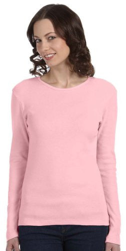 Women's Baby Rib Long Sleeve Crew Neck Tee - 5001 - (Pink - XL)