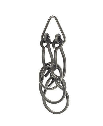 Our collection of puzzles is based on the types of diversions made by blacksmiths in earlier centuries. We call them Tavern Puzzles because they often turned up in country inns and taverns, the community gathering places in American towns, in days gone by. Did blacksmiths have a special fondness for puzzles? Maybe. What is more likely is that making a puzzle was a task that was used as a forging exercise for apprentice blacksmiths. The apprentice could learn techniques for making an eye, a twist, and precision bending in a simple puzzle design like the Iron Heart. After the master was satisfied with the apprentice's skill in producing nails, the young apprentice might put together a brainteaser like the Patience Puzzle. Each puzzle is mechanical in nature: you do not need to use any force or tricks. Puzzles are solved when the object piece is removed. Every puzzle can be considered two puzzles in one, because the solution is not truly mastered until the object piece is returned to its starting point. Literature included with each puzzle shows the puzzle in its starting position and indicates the object piece, as well as how the puzzle looks when it is displayed. Tavern Puzzles are made from mild steel, similar to iron. They will develop a beautiful patina through use and handling. The more you play with your puzzle, the more attractive it will become.