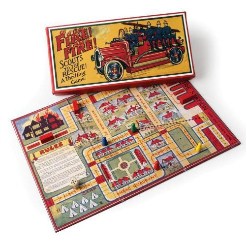 Let's put out that fire! This retro board game is based on how fire fighters do their amazing hero work during the early 1920's. Experience how they do their job in an era where fire trucks don't have sirens and move much slower than they do now! Play the Fire! Fire! Scouts to the Rescue! board game with your family and friends. This toy contains small parts and is not suitable for children under three years of age. Includes: 1 x Game Board 3 x Fire Trucks 4 x Player Pieces 1 x Dice