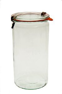 Weck 974 - Don't tackle any preserving or canning project without this 1 liter cylindrical jar. Perfect for preserving taller vegetables like string beans and large fruit. 1 1/2 Liter Cylindrical Jar Includes: 4 Jars, 4 glass lids, 4 rings & 8 clamps. Height: 8 1/8" Opening: 3 7/8" Volume: 54 fl oz. Dishwasher and microwave safe.