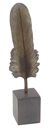 The minimal design of this tabletop feather statue adds a modern style to your home décor. The resin feather stands upright on a solid, square block base measuring 2" wide x 2" long x 2.5" tall. Display on a shelf or side table for a clean and simple decorative accent.
