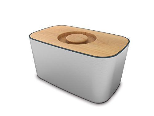 This Joseph Joseph Bread Bin 100 with Reversible Cutting Board Lid is the ultimate way to store your bread and other baked goods. The Bread Bin features an elegant brushed metal finish and a beech wood lid that converts to a slicing board. Hand wash the lid for best results. Wipe bin with damp cloth to clean. Measures 13.75" x 8.5" x 7.25".
