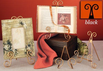 Black finish metal easel, matt finish, flat blsck. 11" for tabletop display. Holds picture frames, plates 7-1/2" wide at base. This product is part of the Stratford Collection.