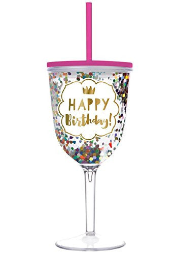 13oz DW Wine Glass Confetti- Happy Birthday with Lid and Straw