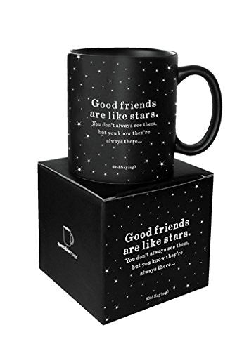 "Good friends are like stars, you don't see them but you know they're always there! - Old saying Generous 14 oz. dishwasher safe ceramic black matte finish mug individually boxed for gift giving. From Quotable.