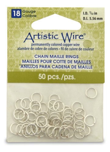 18 Gauge Artistic Wire, Chain Maille Rings, Round, Tarnish Resistant Silver, 7/32 in (5.56 mm), 50 pc