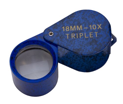Vibrantly colored, blue lapis loupes are available in 10X 18mm oval. Our loupes are fun, but they also feature high quality triplet lenses -properly bonded- which allow distortion free viewing. Our edge-to-edge clarity is the finest available. Comes in a leather case and is individually boxed.