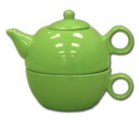 This beautiful glazed ceramic tea pot for one would make a beautiful addition to any kitchen. One-cup teapot sits on top of a teacup, warming it up while your tea is steeping. Simply remove the teapot and pour your tea right into the cup. Lid helps keeps tea warm while sitting. The teapot features a strainer, however many users still prefer to use an infuser. to see infusers we offer in our store. Teapot is dishwasher and microwave safe. Perfect for tea parties, everyday use, or a great gift for that special tea drinker. Color: Lime Green Measurements: Teapot for One: 6"W x 4"H with a 9.7 oz. capacity. Care: Dishwasher & Microwave Safe