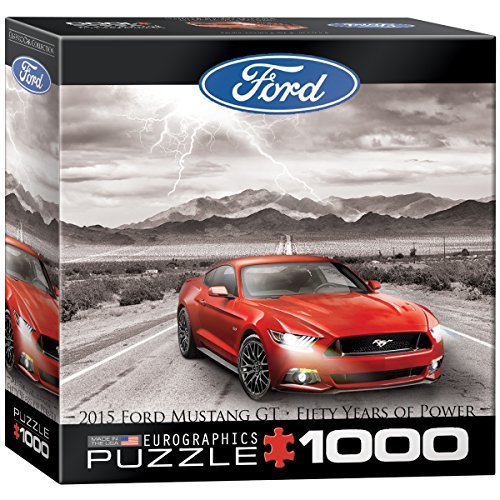 EuroGraphics Ford Mustang 2015 1000-Piece Puzzle (small box). Box size: 8" x 8" x 2.37". Finished Size: 19.25" x 26.5". Fifty years in the making, the 2015 Ford Mustang is the 50th anniversary edition. Sleek, powerful and as iconic today as when it first rolled off the line, an American classic. Strong high-quality puzzle pieces. Made from recycled board and printed with vegetable based ink. This superior quality puzzle will delight and educate all at the same time.