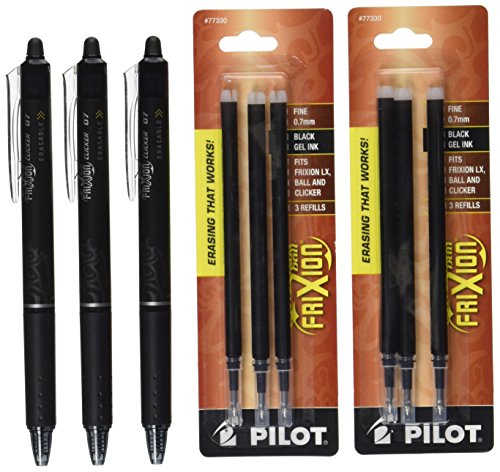 3 Frixion Clicker Gel Pen, Fine Tip, Black and 2 of 3 Pack Pouch, Frixion Ball Refill Pen, Fine Tip, Black