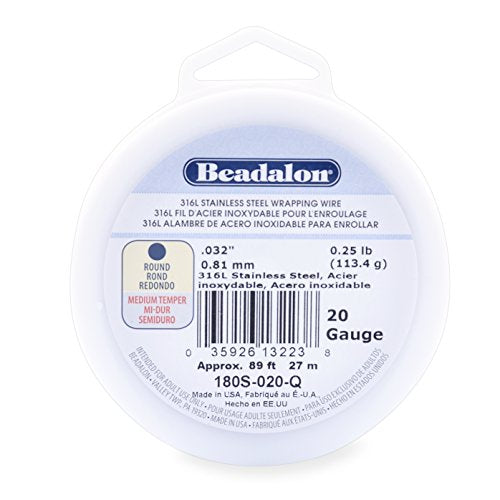 Made of type 316L stainless steel, this specially tempered wire has a different "feel" than other half-hard materials such a as gold-filled or sterling silver, and it is a great alternative and is stronger. This material is perfect for teaching classes and practice. Stainless steel is hard and will work harden faster than other wires, and resembles the finish of vintage Platinum. Made in the USA