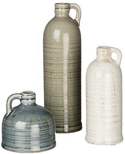 Decorative distressed primitive jugs. Set of 3 in blue, green & white.