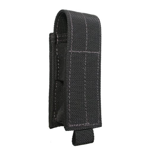 Product Details Product Features Height (Enclosed Part): 3.75-Inch Height (Max Content): hold flashlight up to 5.0-Inch Diameter: 1.25-Inch with Elastic Ret. Overall Width: 1.5-Inch Belt: 3-Inch Closed Loop Attach: 3-Inch TacTie (sold separately) used for modular attachment onto ALICE, MOLLE/PALS, Maxpedition webbing At the behest of hand-held LED light manufacturer INOVA/Emissive Energy Corp., MAXPEDITION created the 4-Inch and 5-Inch Tube Sheath models for hand-in-glove fit on INOVA's T1 and T3 models, respectively. These versatile sheaths, equipped with lateral elastic retention, also fit a multitude of flush or flared bezel torches from all major manufacturers. Rather than having the cost-cutting crimped bottoms like most other sheaths, MAXPEDITION Tube Sheaths have 1.1-Inch diameter throughout, all the way to the base, greatly augmenting carrying capacity, versatility and accessibility. MAXPEDITION Tube Sheaths are slim, saving precious space on web gear or belt. A secure Velcro lid provides full range of length adjustability while the grommeted bottom provides quick drainage and shine through functionality.
