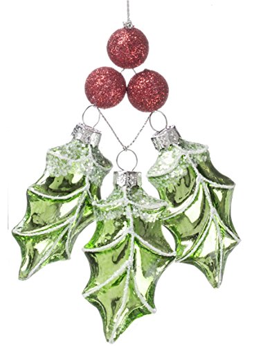 This lovely holly berry cluster ornament adds sparkle and elegance to your holiday décor. The three holly leaves are covered in white glitter to resemble snow. Measures 5" long x 5" wide.