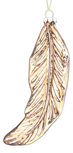 The gold-tone paint and antique finish of this leaf ornament adds elegance to holiday décor. The hollow, lightweight glass ornament measures 6" long x 2" wide x 1" thick.