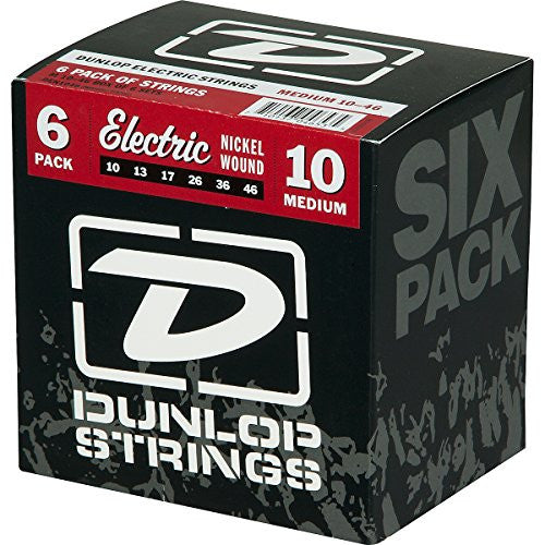 A unique combination of crisp highs, aggressive mids, and a focused low end gives Dunlop electric guitar strings a voice all their own. The Dunlop recipe for string-to-string balance and responsiveness produced a 6 string set that is perfect for dynamic lead work, while notes in a guitar chord ring out clearly whether clean or heavily distorted. This powerful voice is delivered in these low-tension nickel-plated steel guitar strings with a smooth tactile feel that break in fast and last a long time.Gauges: 10-13-17-26-36-46