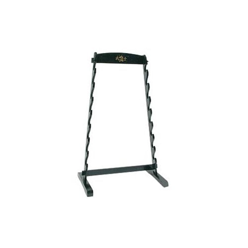Hold up to 8 swords on this black hardwood sword display stand.
