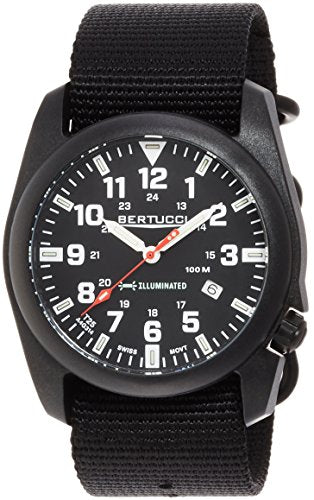 A passion for performance... thatâ€TMs the driving force of what goes into the new Bertucci A-5P Illuminated. Itâ€TMs loaded with premium features such as a U.S. patented Durability Certified carbon fiber reinforced 45 mm case, tritium illuminating tubes that will glow continuously without need for battery or button push, and a rugged U.S. patented DX3 nylon band... well put together to deliver the performance for lifeâ€TMs day-to-day challenges... what ever they may be.