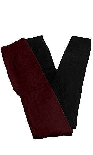 Anemone Women's Cozy Winter Fleece Lined Seamless Leggings One Size Black 2 Pk Black/Wine One Size