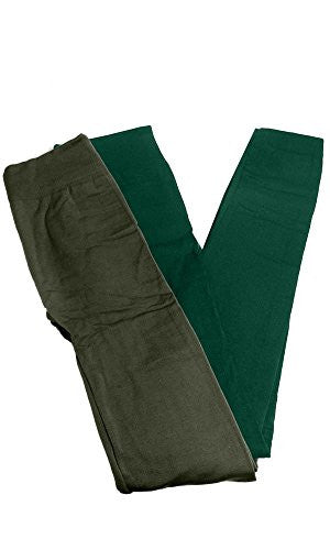 Anemone Women's Cozy Winter Fleece Lined Seamless Leggings One Size Black 2 Pk Dk Olive/Evergreen One Size
