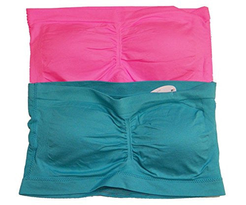 Anenome Women's Strapless Seamless Bandeau Padding (2 or 4 pack),One Size,2 Pack Light Teal_Pink
