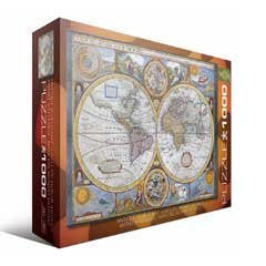EuroGraphics New and Accurate Map of the World 1000-Piece Puzzle. Box size: 10" x 14" x 2.37". Finished Size: 19.25" x 26.5". This magnificent antique world map was produced by John Speed (1552-1629), who was a historian, now best remembered as a cartographer. Strong high-quality puzzle pieces. Made from recycled board and printed with vegetable based ink. This superior quality puzzle will delight and educate all at the same time.
