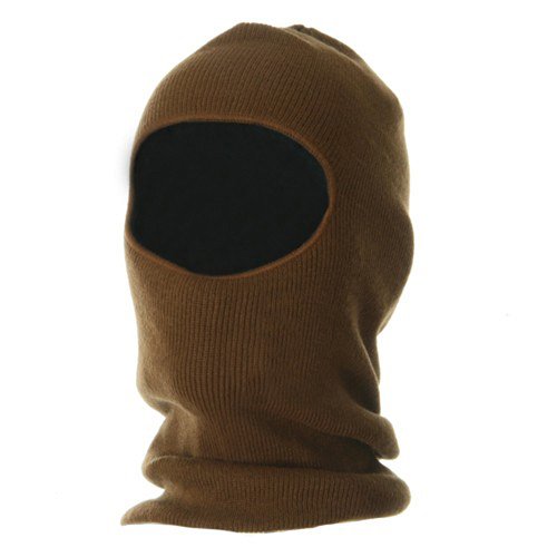 Made in USA, for full coverage of your entire head from the cold and other extreme elements, slip on this stretchy, Copper Fleece Lined One Hole Face Mask.  Made from blend of polyester and acrylic with thick, soft and warm material, this mask is fully fleece lined inside for added comfortable and snug fit.  With flexibility, fitting most for adults, this mask will keep your head and neck well insulated from the cold weather while giving you an ample opening for your eyes.  This lightweight mask is ideal for all winter outdoor activities involving bitter cold.     Made of polyester and acrylic. ONE SIZE fits most for adult. Crown measures 17 inches deep, 7 inches wide. Dual layers with one face hole. Thick, soft and warm material. Hand wash only. Available in black, navy, blaze and copper. Made in USA